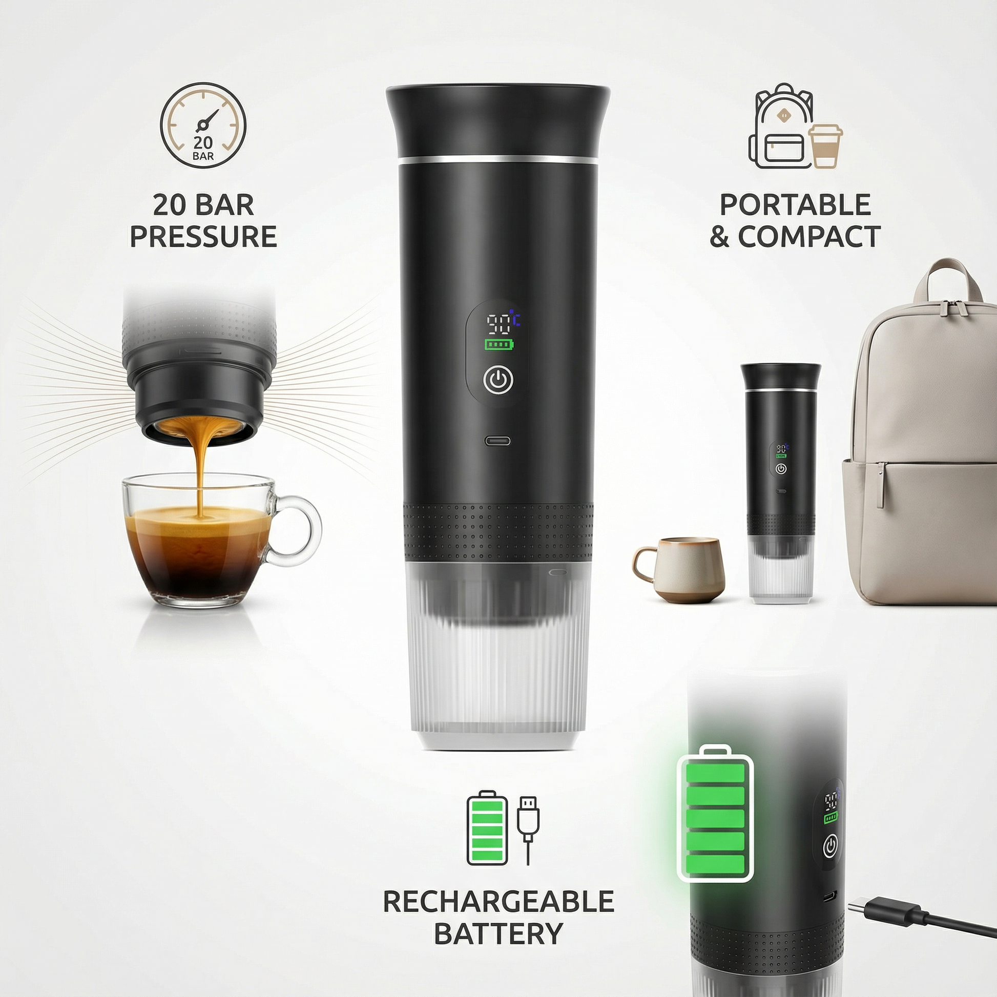 Portable Espresso Machine – Rechargeable Coffee Maker for Travel & Camping
